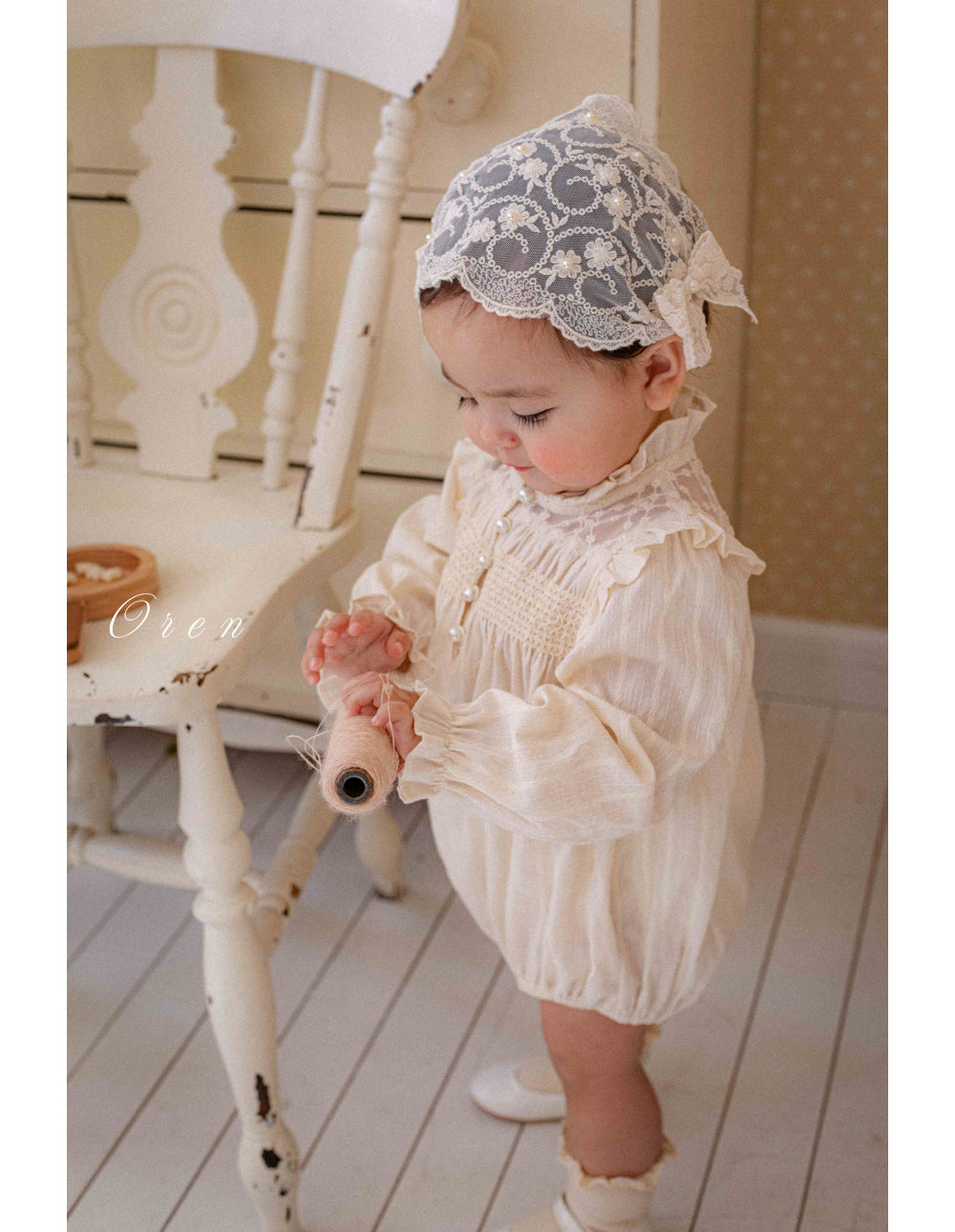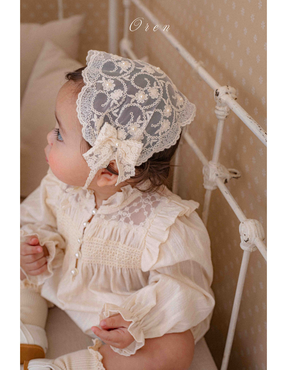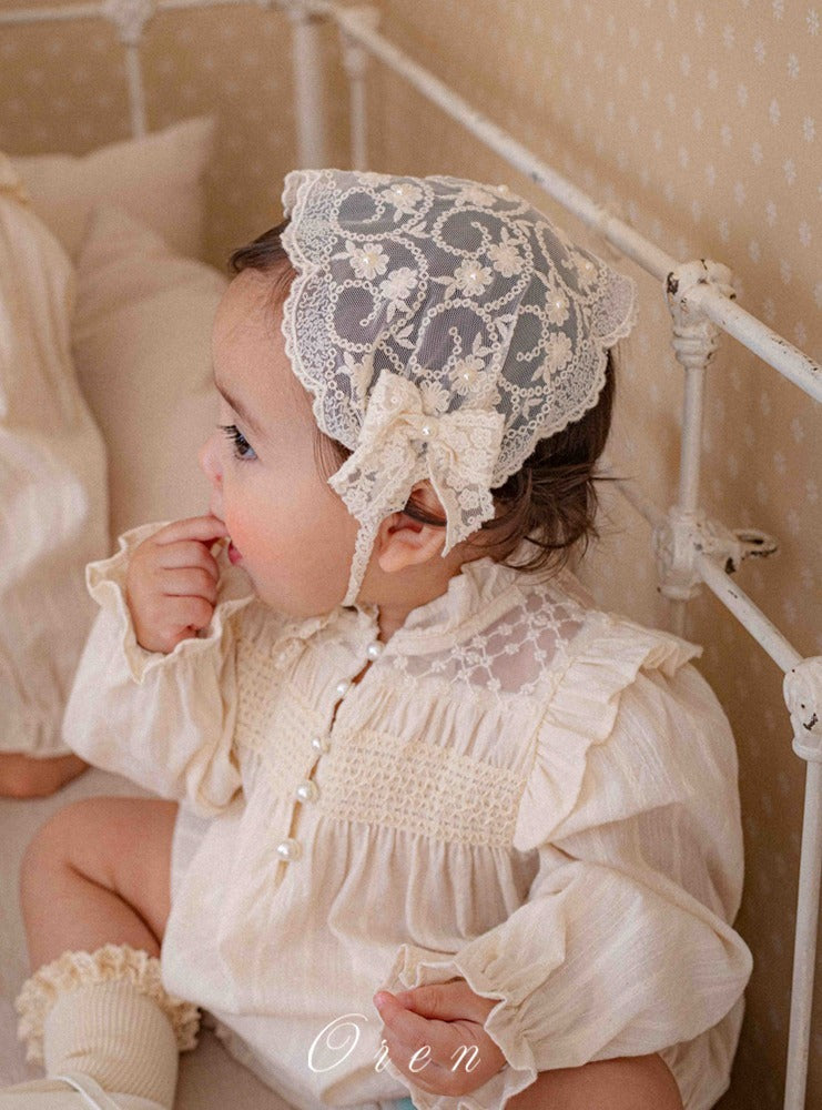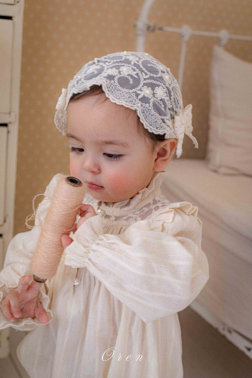 韓國童裝 26春 | OR80 Rosette Pearl Bonnet
